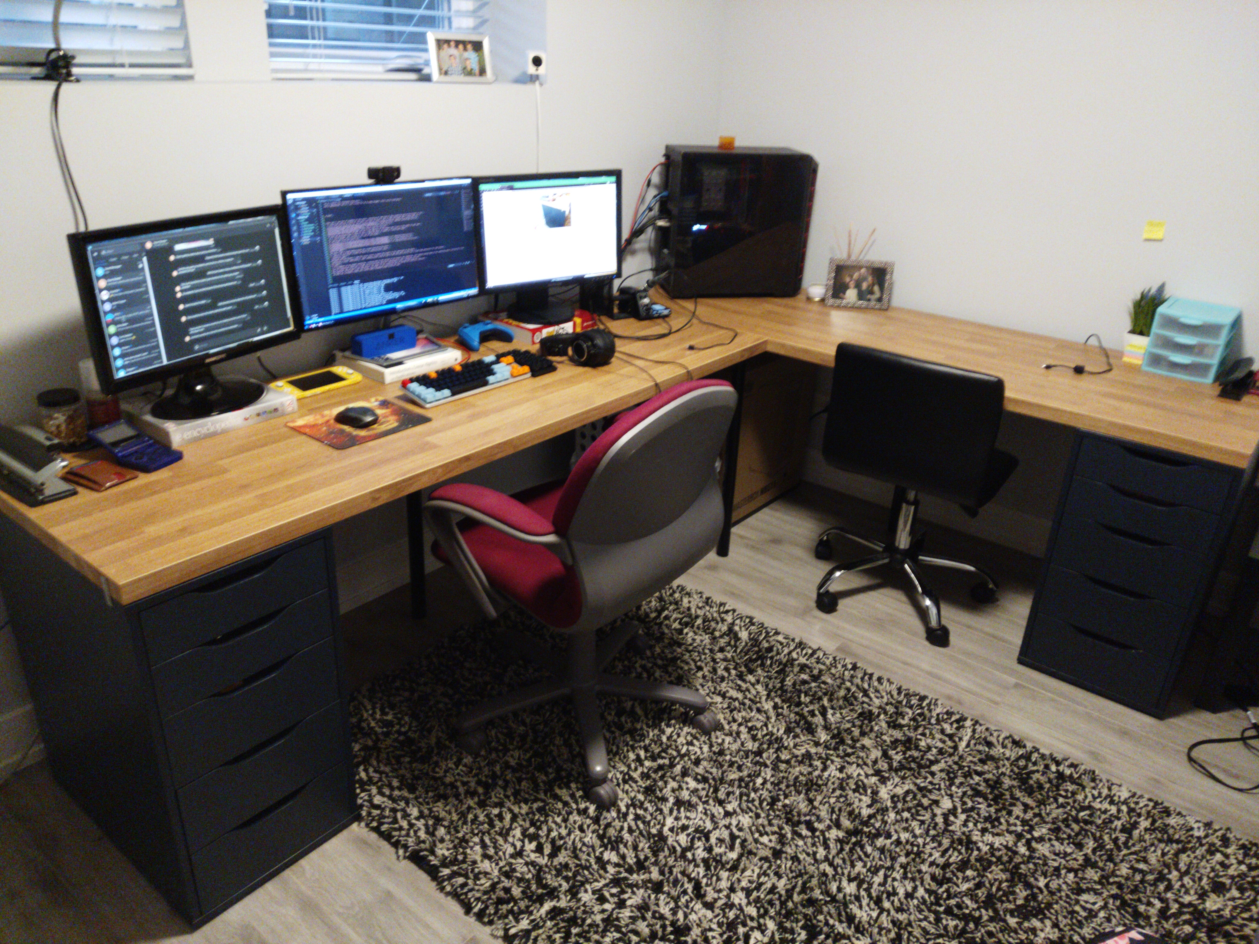 If you browse r/battlestations you'll see tons of examples of Ikea desks, consisting of some kind of Ikea countertop and an Alex drawer or two. I wanted a large desk and nothing I could find sufficed so once all the parts were back in stock I went to Ikea and bought what I would need.